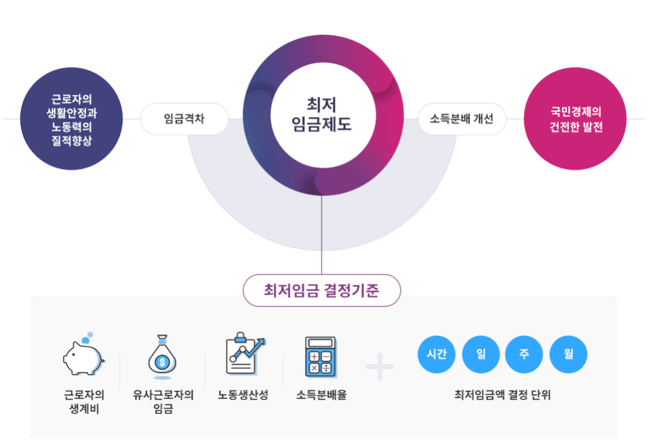 최저임금 적용 기준과 예외 사항은 고용노동부 최저임금 제도 안내를 보시면 자세한 내용을 확인하실 수 있습니다.