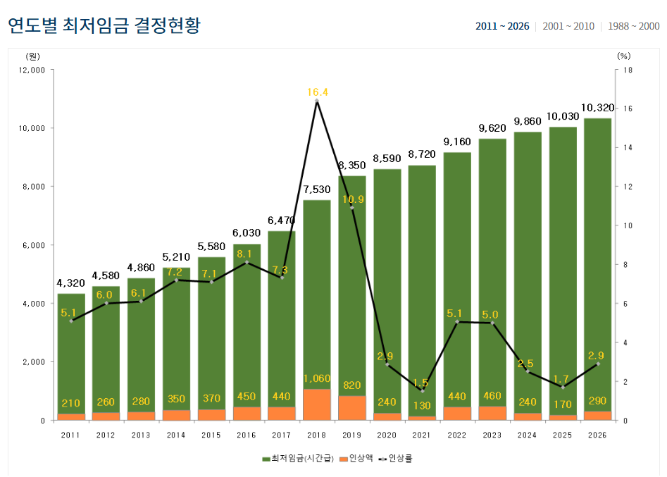 2026년 최저임금은 시급 10,320원으로 확정됐습니다.