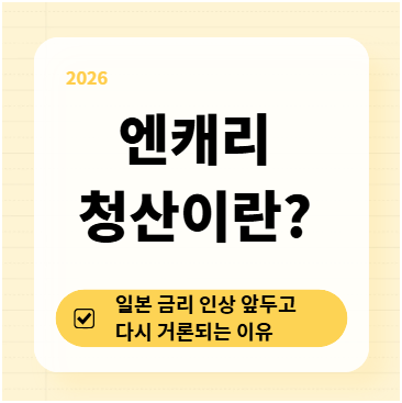 특히 최근 일본은행이 기준금리를 0.75% 수준으로 인상할 수 있다는 전망이 나오면서, “엔캐리 자금이 움직일 수 있다”는 해석이 함께 나오고 있습니다. 이 글에서는 엔캐리 청산이 무엇을 의미하는지, 그리고 왜 일본 금리 인상 국면에서 이 용어가 반복해서 등장하는지를 설명 중심으로 정리합니다.