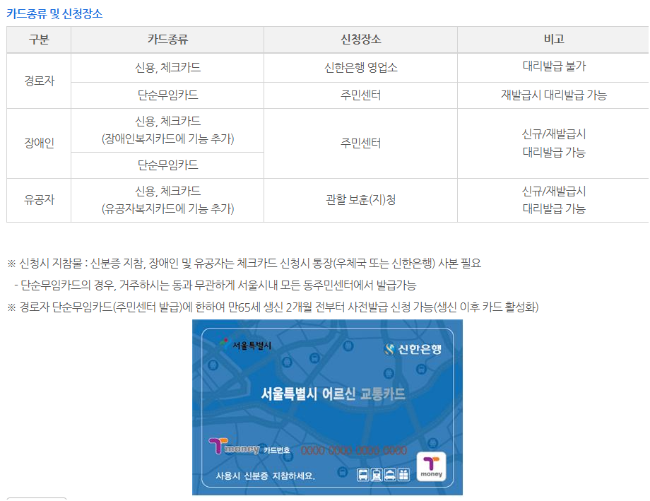 65세 이상 교통카드 무료 이용 범위 (표 정리)