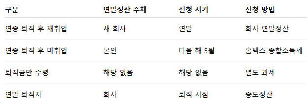 퇴직했다고 해서 모두 같은 방식으로 연말정산을 하는 것은 아닙니다.