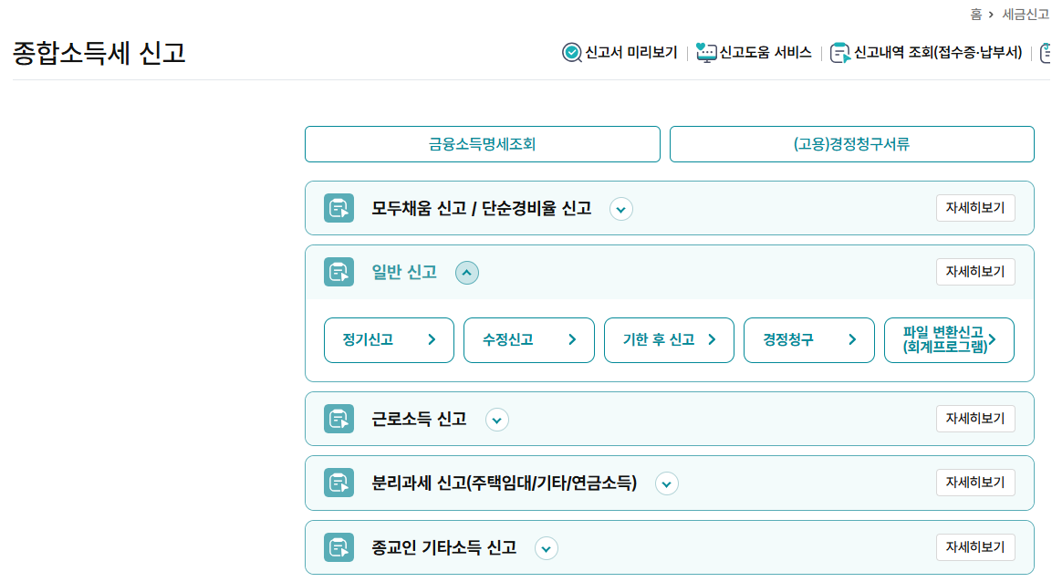 종합소득세 신고 메뉴 선택
