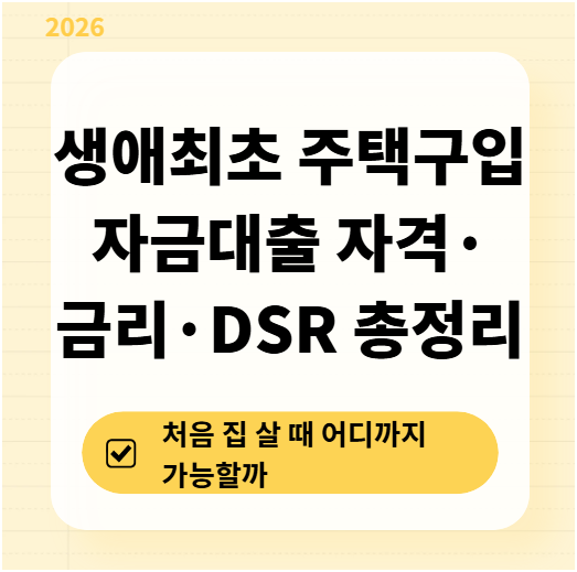생애최초 주택구입자금대출은 ‘처음 집을 산다’는 조건 하나만으로 결정되는 대출이 아닙니다. 소득, 주택 가격, 기존 부채, DSR 구조가 함께 맞아야 실제로 활용할 수 있는 제도입니다.