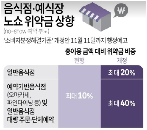 최근 개정안에 따르면 노쇼 위약금 기준이 크게 바뀌었습니다.