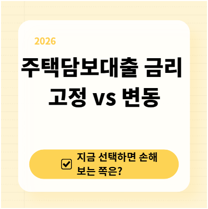 주택담보대출을 받을 때 가장 고민되는 선택이 바로 금리 방식입니다. 고정금리가 안정적이라는 말도 있고, 변동금리가 결국 더 싸다는 얘기도 많습니다. 실제로 저 역시 대출을 알아보면서 “지금 시점에서는 어느 쪽이 손해일까”라는 고민을 가장 오래 했습니다. 주담대 금리는 감이 아니라 숫자로 계산해봐야 판단할 수 있습니다.