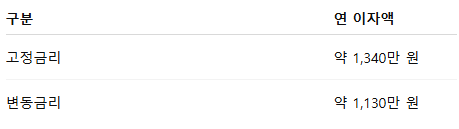첫해만 보면 변동금리가 약 210만 원 저렴합니다.