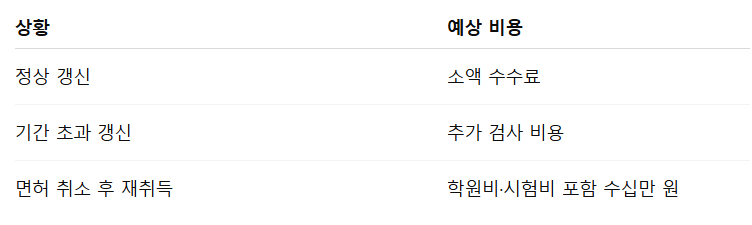 갱신 기간을 크게 초과해 면허가 취소되는 경우, 재취득 과정이 필요해질 수 있습니다. 이때는 시험 준비나 학원 등록까지 고려해야 합니다.