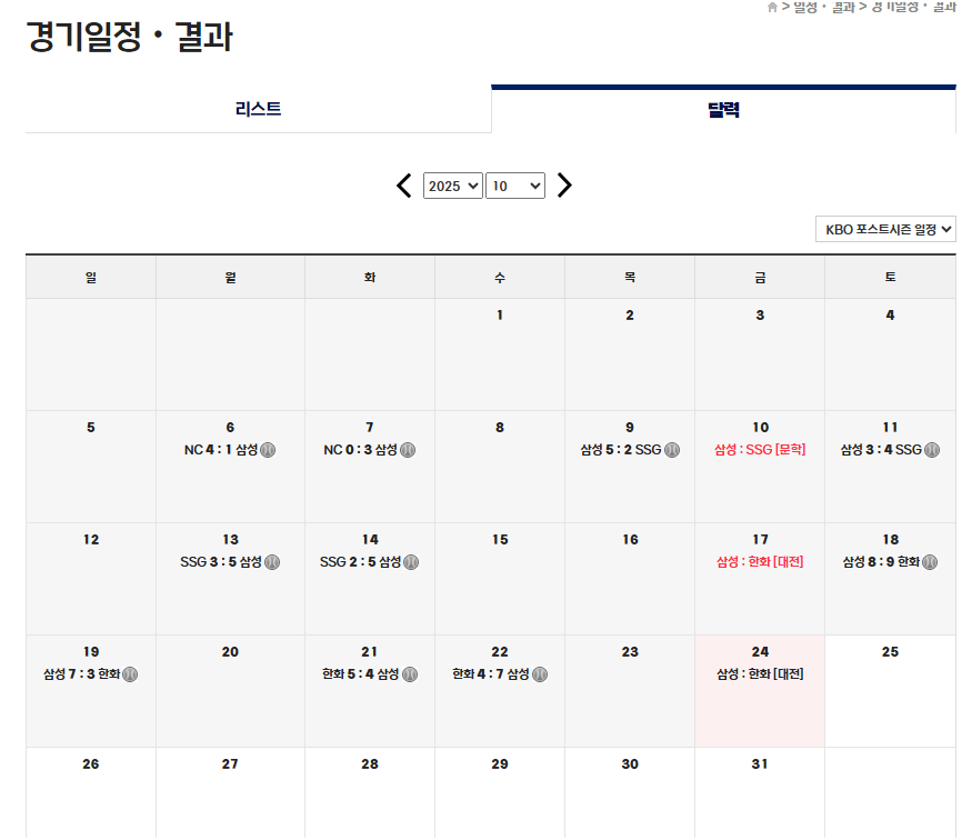 (아래 버튼을 누르시면 프로야구 일정 상세보기 공식사이트로 바로 이동가능합니다.)