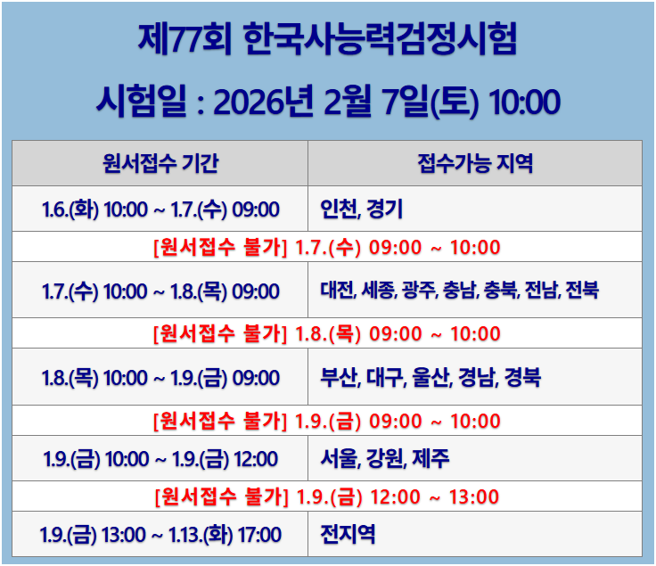 1. 2026년 제77회 한능검 시험일정 및 접수 안내