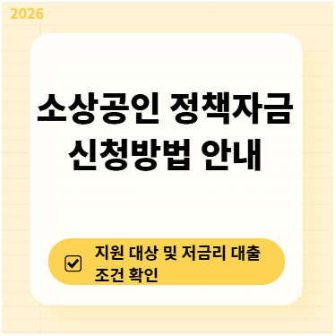 - 신청 절차: 2026년부터는 100% 비대면 온라인 신청이 가능해졌으므로, 소상공인 정책자금 홈페이지에서 사전 진단 후 서류를 업로드하면 됩니다.