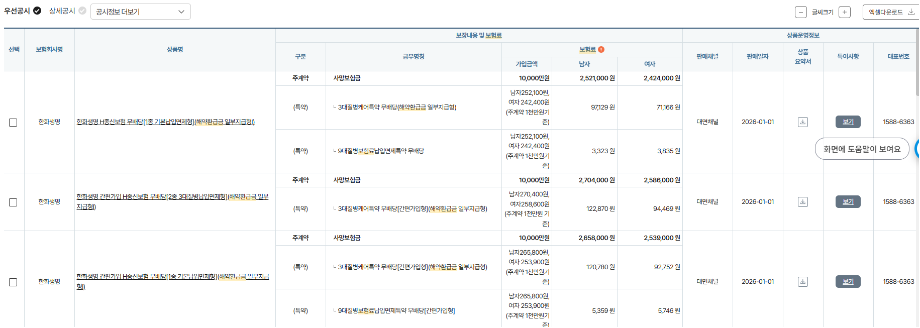 [ 📌 생명보험협회 : 보험사별 사망보험금 연금전환 상품 비교 공시 확인 ]