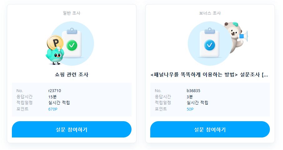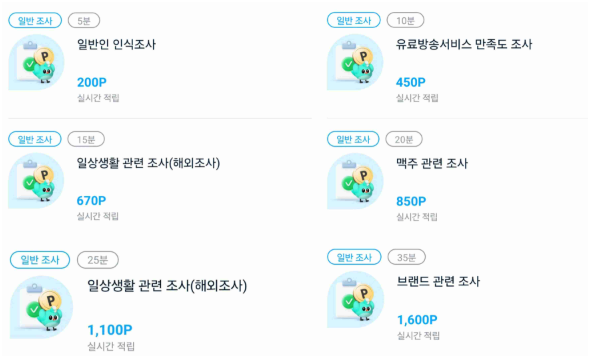 긴 설문(예: 15분 이상)은 1,000포인트 이상도 지급됩니다.