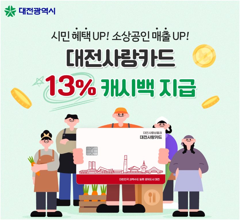 ‘대전사랑카드’ 캐시백, 7%->10%-> '이제는 연말까지 13%로 ↑' | 대전광역시청