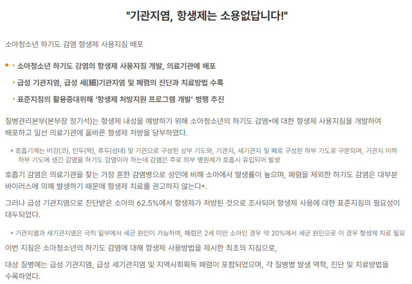 기관지염, 항생제는 소용없답니다! < 전체 < 보도자료 < 알림 : 보건복지부 대표홈페이지