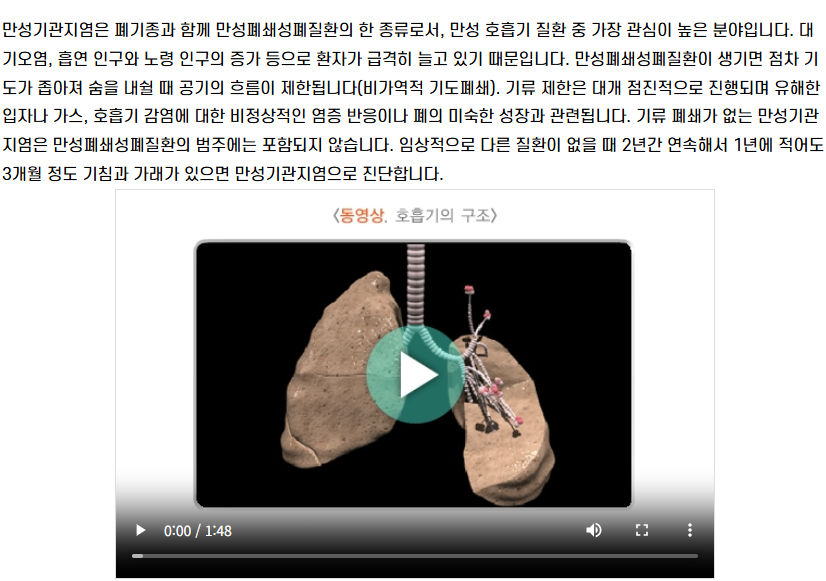 기관지염은 기관지 내벽이 염증으로 부어 기침·가래·호흡곤란을 일으키는 질환입니다.
