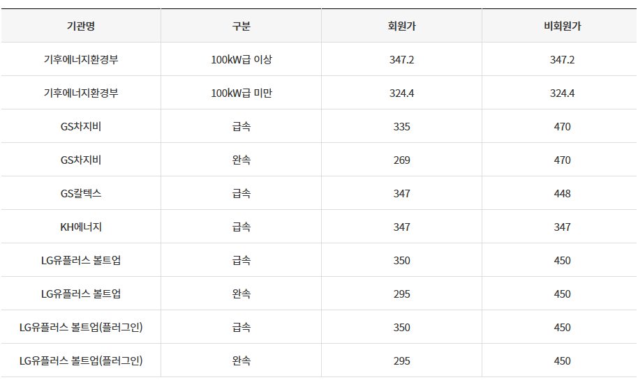 전기요금 인상으로 충전 단가는 일부 상승