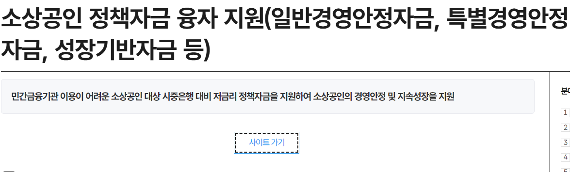 아래 이미지를 누르시면 소상공인 정책자금 융자 지원 사이트로 방문가능합니다.