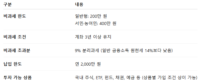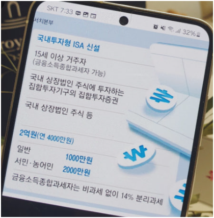 ISA는 예금·펀드·국내상장주식 등을 한 계좌 안에서 운용할 수 있도록 설계된 통합형 계좌로, 3년 이상 유지 시 수익 일부에 대해 비과세 혜택이 제공되는 구조입니다.