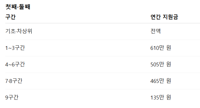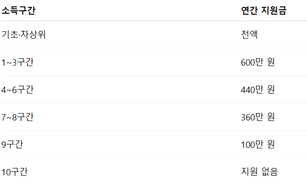 2026년 지원금도 2025년과 동일한 구조를 유지하며, 소득구간별로 지원액이 명확하게 구분됩니다.