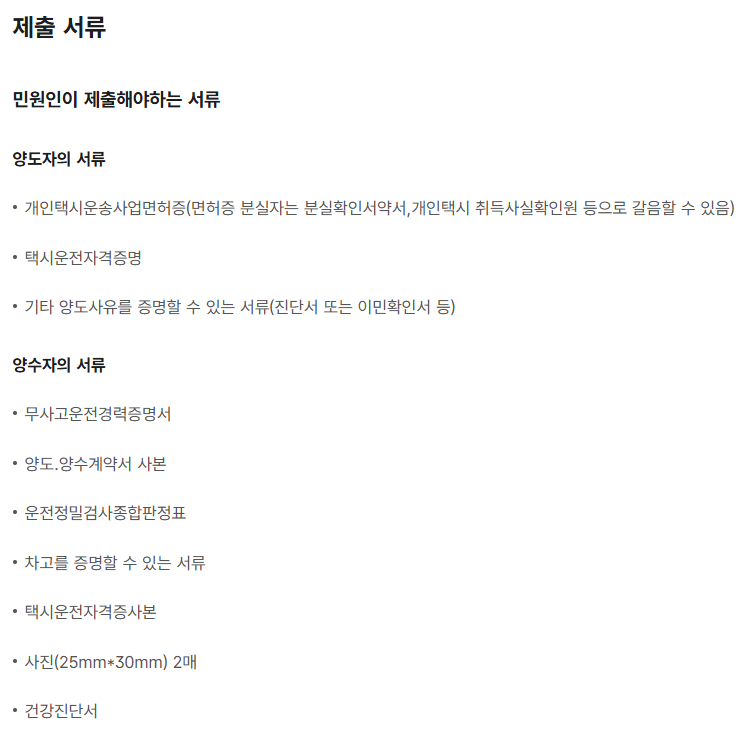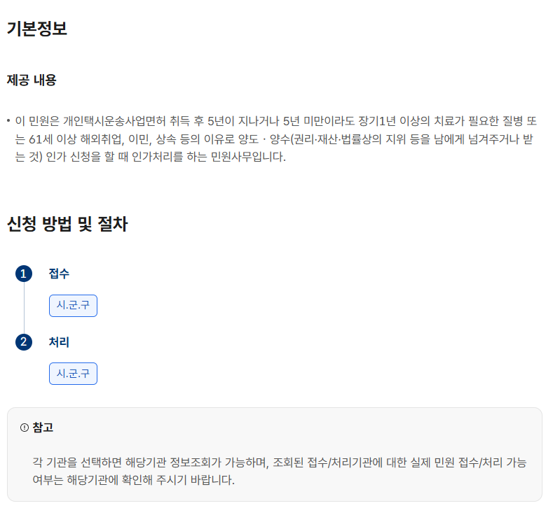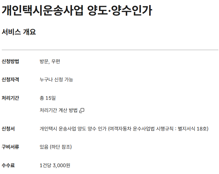 개인택시운송사업 양도·양수인가 | 민원안내 및 신청 | 정부24