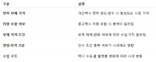 개인택시 시세는 단순 면허 가격만으로 결정되기 어렵습니다.