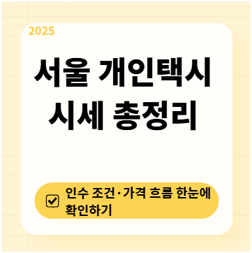 그래서 시세를 단정적으로 특정 금액으로 제시하기보다는 “가격 흐름”, “요인별 구조”, “인수 시 확인해야 하는 공적 기준”을 정확히 이해하는 것이 더 중요합니다. 이 글에서는 2025년 기준으로 서울 개인택시 시세 흐름, 시세에 영향을 주는 정책·공급 구조, 개인택시 양도양수 자격조건, 인수 절차와 주의사항까지 한 번에 정리했습니다. 서울에서 개인택시 준비 중이라면 이 글 하나로 전체 구조를 이해할 수 있습니다.