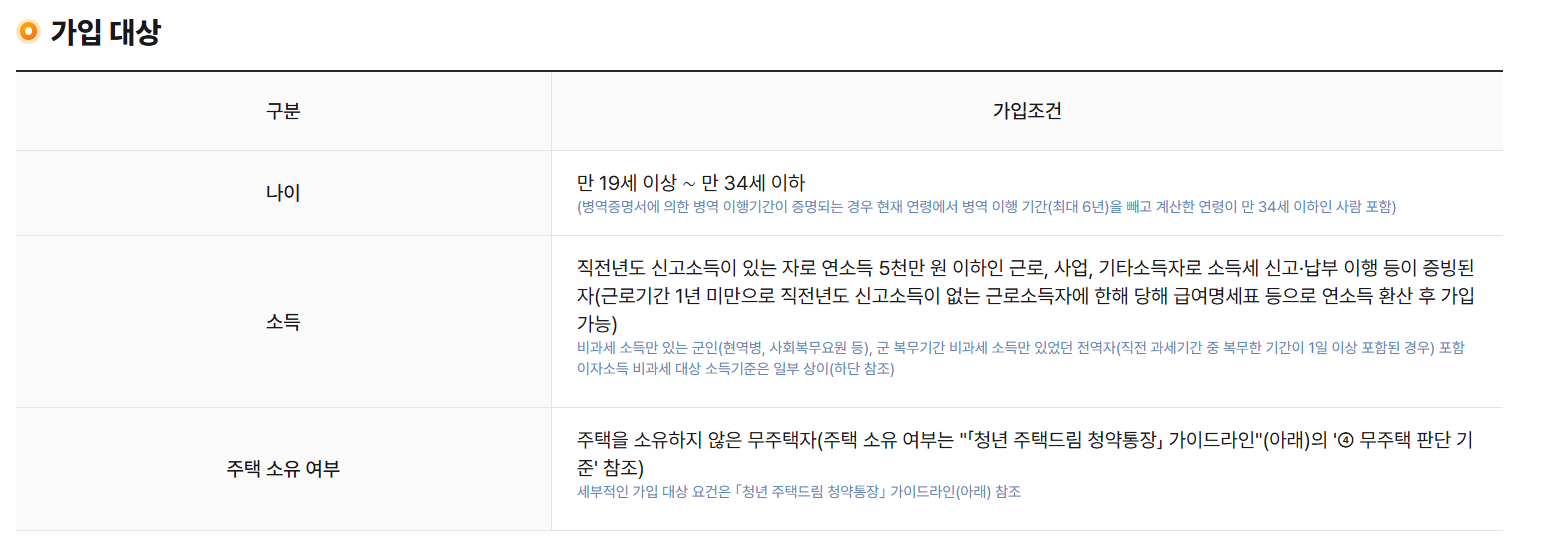 아래 기준을 충족하면 청년 주택드림 청약통장 가입이 가능합니다.