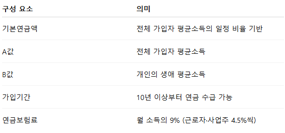 → 소득이 낮아도 일정 부분 보전되는 구조(A값 적용) 때문에 기본 연금액을 보장받습니다.