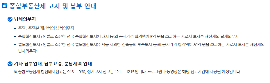 종부세 제도 설명은 국세청 홈택스(국세청 홈택스에서 종부세 제도 안내 제공)에서 확인할 수 있습니다.
