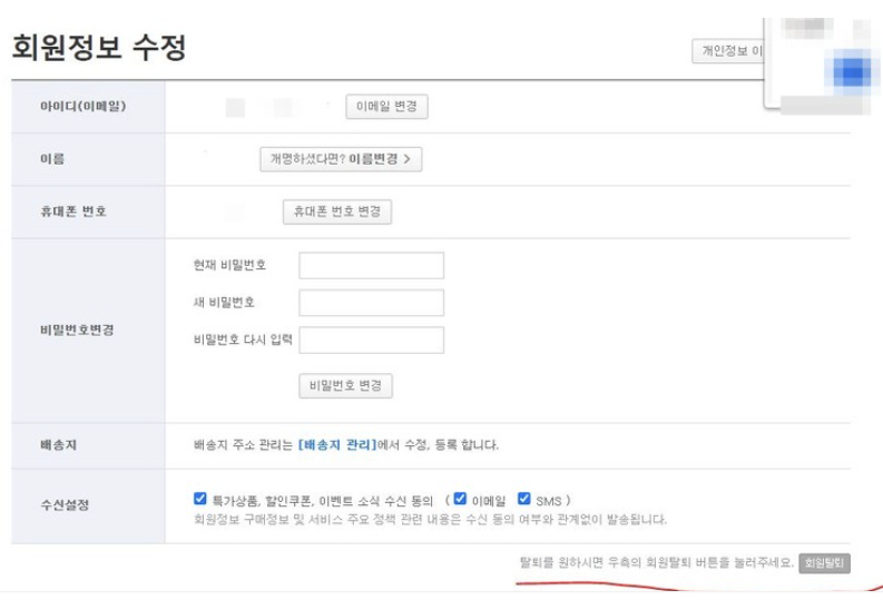 화면 오른쪽 아래에 있는 회원탈퇴 버튼 선택