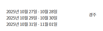 정상회의 본회의(Leaders’ Meeting): 2025년 10월 31일 ~ 11월 1일, 경상북도 경주에서 개최됩니다.