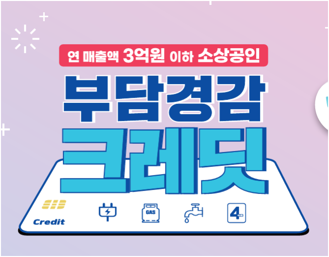 부담경감 크레딧은 정부와 소상공인시장진흥공단이 운영하는 소상공인 고정비 부담 절감 정책으로, 승인되면 전기·가스·통신·4대보험 등 지정된 항목에서 정책 전용 크레딧(포인트)을 사용할 수 있습니다.