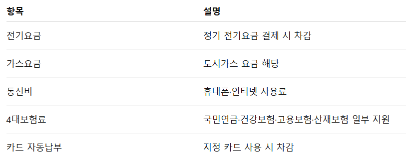 📌 [표 2] 부담경감 크레딧 사용 가능 항목