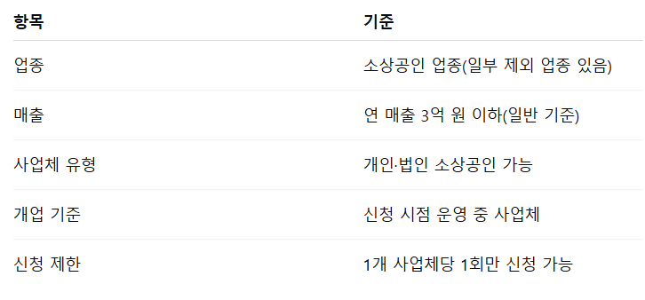 📌 [표 1] 소상공인 부담경감 크레딧 지원 대상 요약