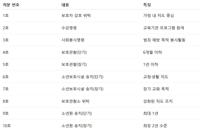 ■ 소년보호처분 1~10호 단계 정리