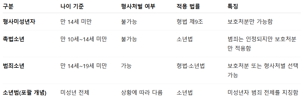 ■ 소년범·촉법소년 관련 주요 개념 비교