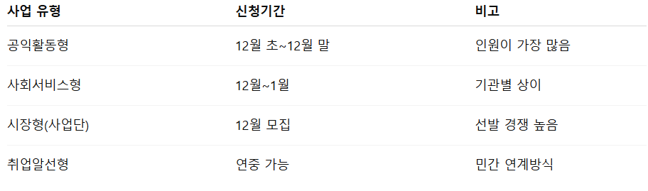 2026년 신청기간은 대부분 12월~1월에 집중되기 때문에,